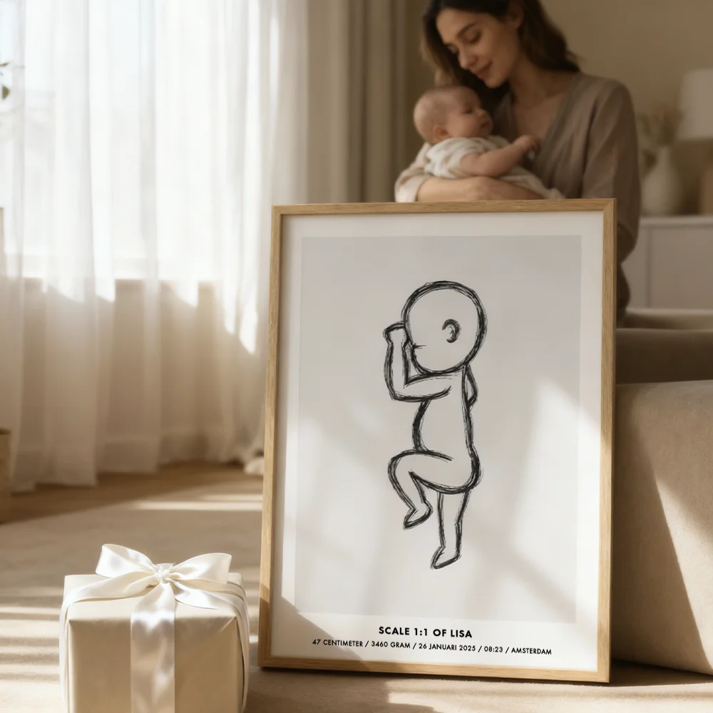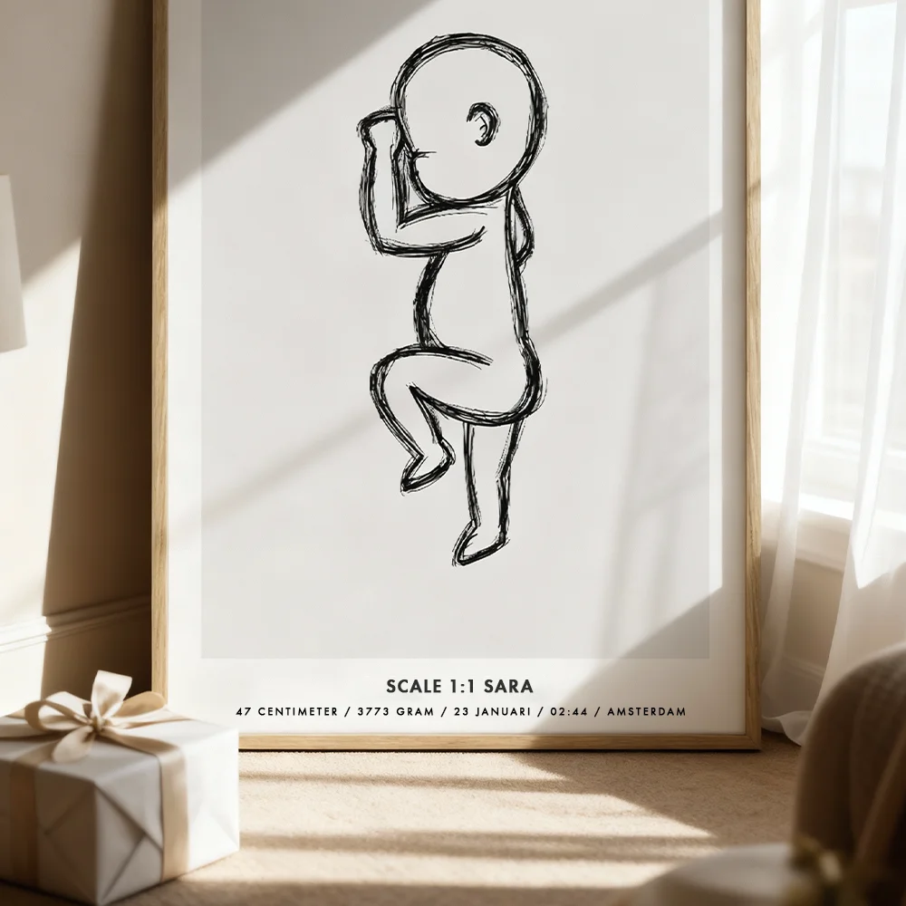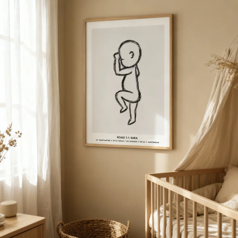 Birth poster for your baby on a 1:1 scale? Babydruk offers you a unique and timeless illustration that is adjusted to the actual height of your baby at birth.